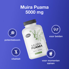 500 mg muira puama-extract in een verhouding van 10:1 komt overeen met 5000 mg muira puama.